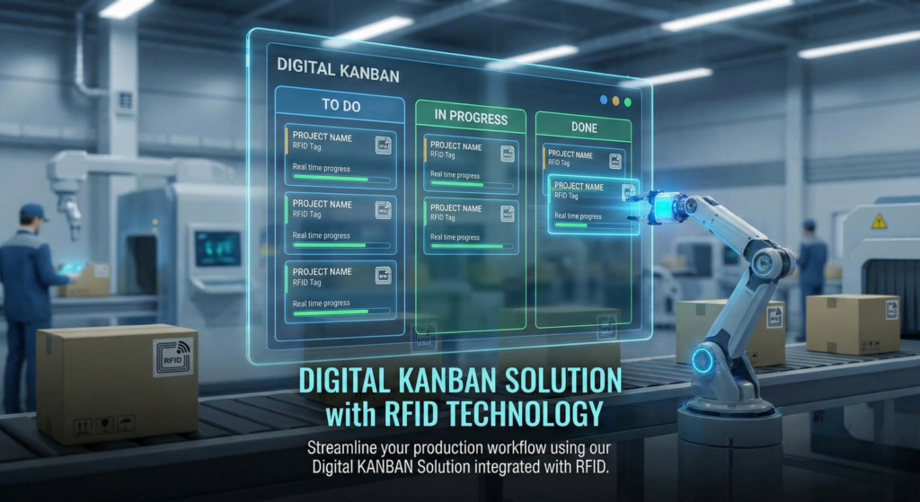Streamline your production workflow using our Digital KANBAN Solution integrated with RFID. By replacing traditional KANBAN cards with RFID-enabled electronic cards and utilizing interactive digital displays, we offer real-time task tracking and status updates. This modern approach enhances process visibility, reduces bottlenecks, and boosts overall productivity.